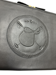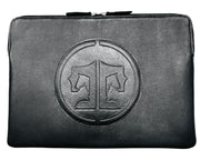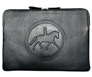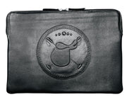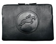 Protect your computer in our NEW padded, discipline specific Tucker Tweed Laptop Sleeve. Completed in black pebble grain leather with copper silk interior, this case includes an additional interior pocket.