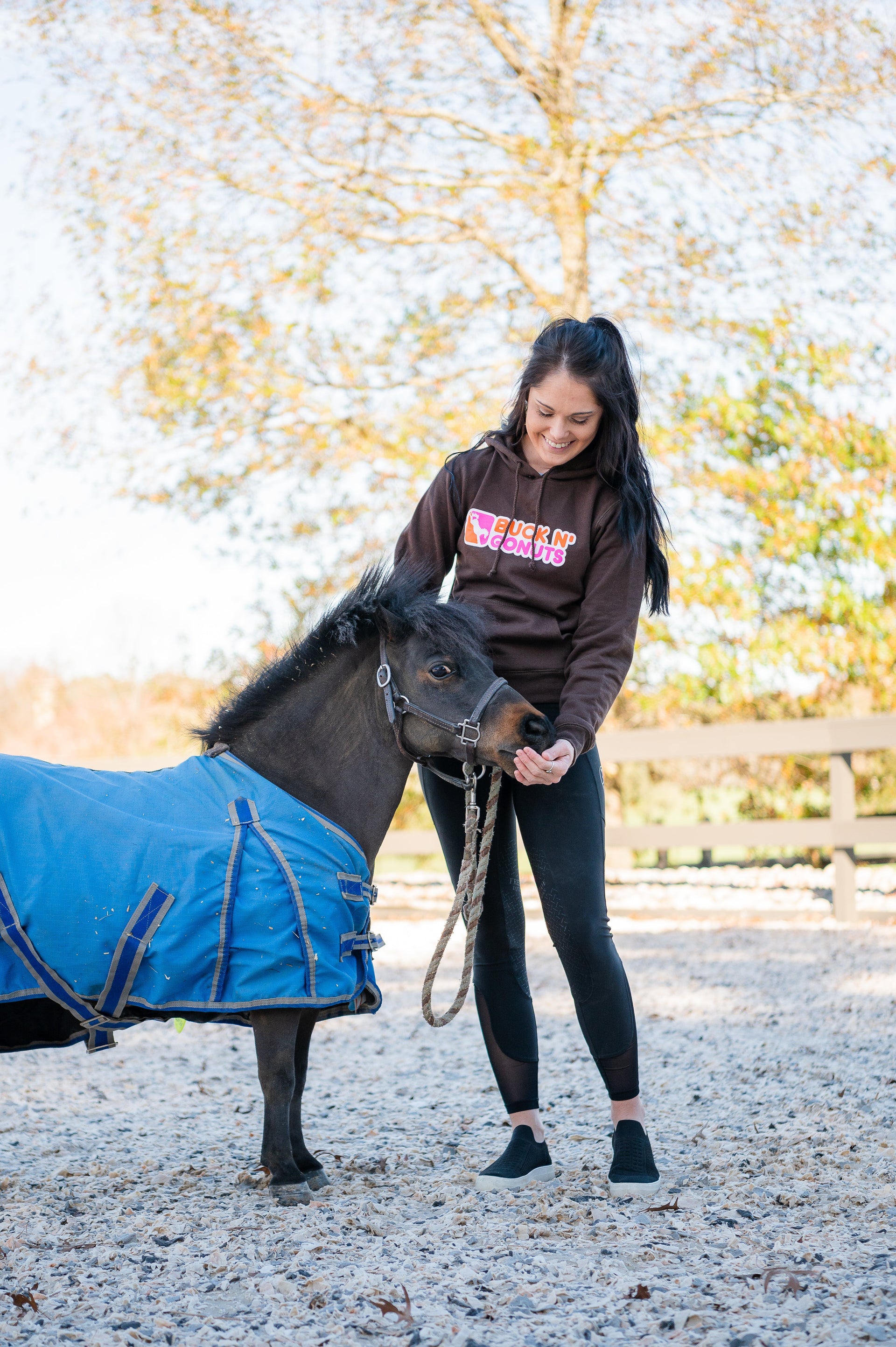 Super soft & cozy, and featuring one of our all time favorite, punny designs, the Buck N Go Nuts hoodie is perfect for equestrians that love coffee!