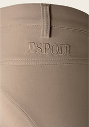 The Coquette style offers the same great fabric and fit as our popular Inspire style but without the "Bling." Specially designed for the traditional hunter or equitation rider. Simply the most comfortable and innovative breech. Finished with a custom subtle tone on tone Espoir branding on back belt area and signature crossed back belt loop in Espoir colors. Slimming stitch lines add sophisticated details to this collection. Mid to low rise with sock bottom for a great fit. Mid to low waist.
