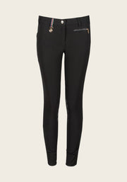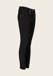 A comfortable and innovative breech with a designed side pocket for a phone. Finished with a custom Espoir golden name plate on the side phone pocket and signature crossed back belt loop in Espoir colours. Tone on tone glitter details on the pocket zips and slimming stitch lines add sophisticated details to this collection.