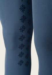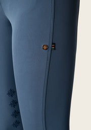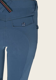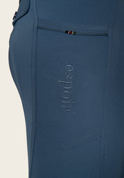 A comfortable and innovative breech with a designed side pocket for a phone. Finished with a custom Espoir golden name plate on the side phone pocket and signature crossed back belt loop in Espoir colours. Tone on tone glitter details on the pocket zips and slimming stitch lines add sophisticated details to this collection. Mid to low waist.
