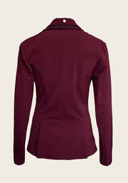 A fitted show jacket made from a lightweight stretchable fabric, stylishly executed with princess style lines. The front panel is closed with beautiful custom Espoir buttons which match smaller buttons on each sleeve.Tone on tone details on the collar and front pocket zips add sophisticated details to this jacket. A sporty, sophisticated styled equestrian jacket.