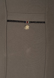 A comfortable and innovative breech with a designed side pocket for a phone. Finished with a custom Espoir golden name plate on the side phone pocket and signature crossed back belt loop in Espoir colours. Tone on tone glitter details on the pocket zips and slimming stitch lines add sophisticated details to this collection.