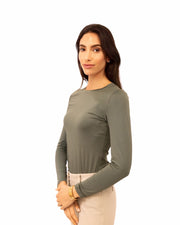 Simple and chic - The Maeve Shirt is what you need for everyday. Whether you are riding or grazing your horse, the Maeve Shirt will keep you cool and comfortable. The mesh accents on the back allow for airflow to the body... and style, of course. Available in Jet Black, White, Sage, Lilac, Mulberry, and Graphite Grey. The Maeve Shirt is made from 85% Polyester, 27% Spandex.
