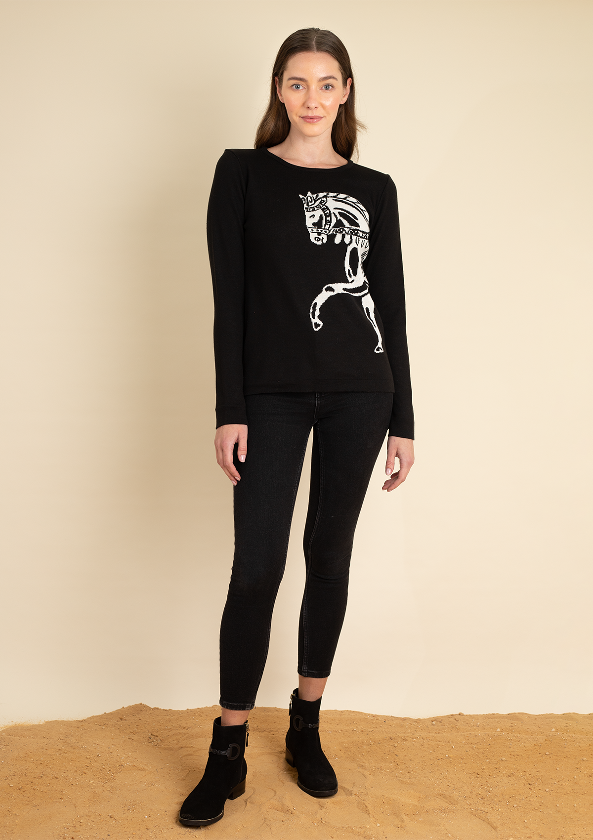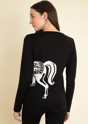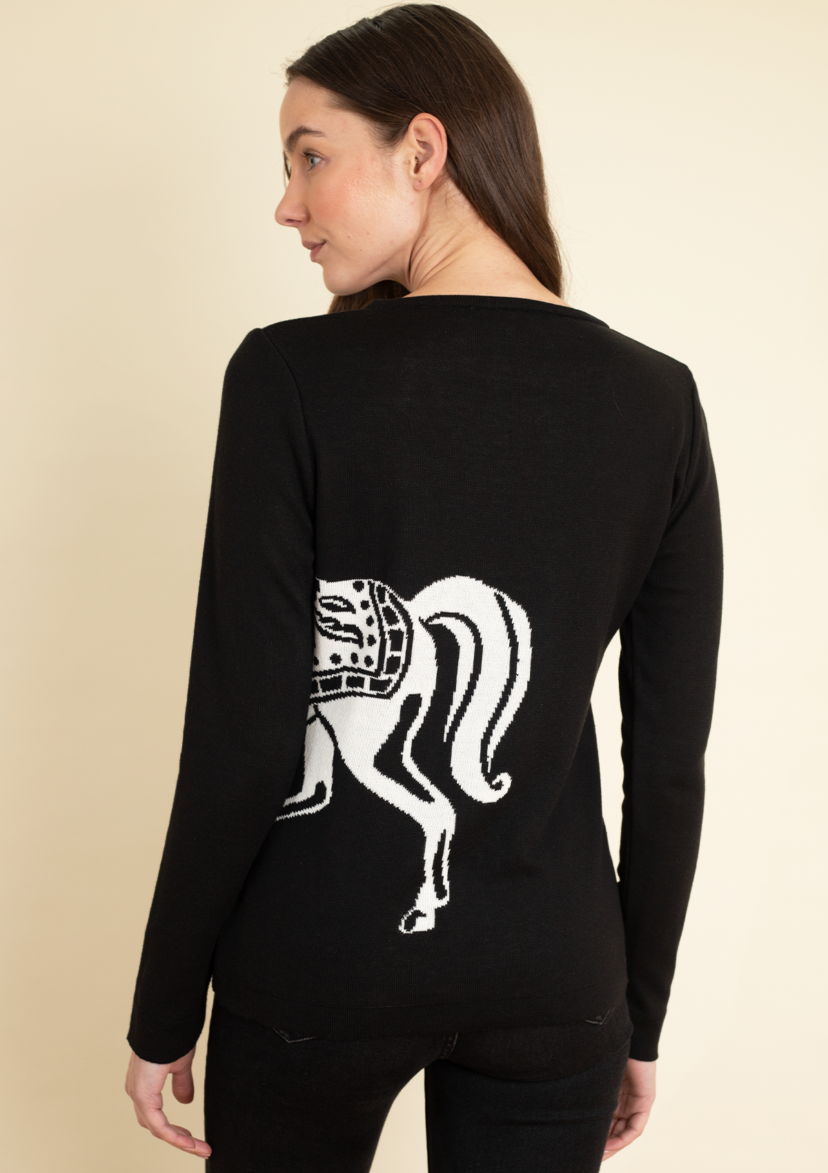 Our beloved best-seller returns with an updated design. The Martina Sweater is a beautifully knitted piece featuring a timeless horse motif on both the front and back. Its simple and classic silhouette makes equestrian style effortless, offering a perfect blend of elegance and comfort.