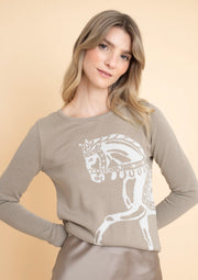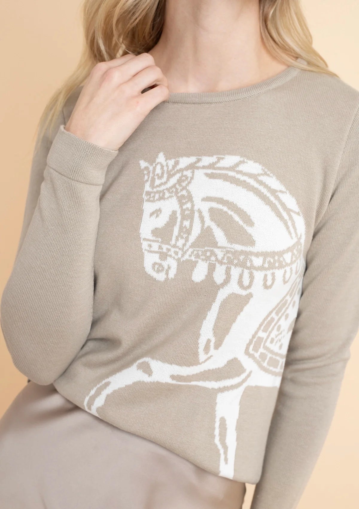 Whether you're dressing it up or keeping it casual, this versatile sweater is designed to make any outfit feel stylish and refined. The Martina Sweater is a true embodiment of timeless fashion, perfect for adding a unique equestrian touch to your fall wardrobe.