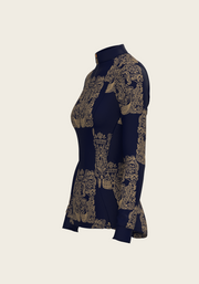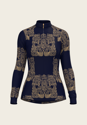 Mermaid Horses in Navy and Gold Quarter Zip Sun Shirt