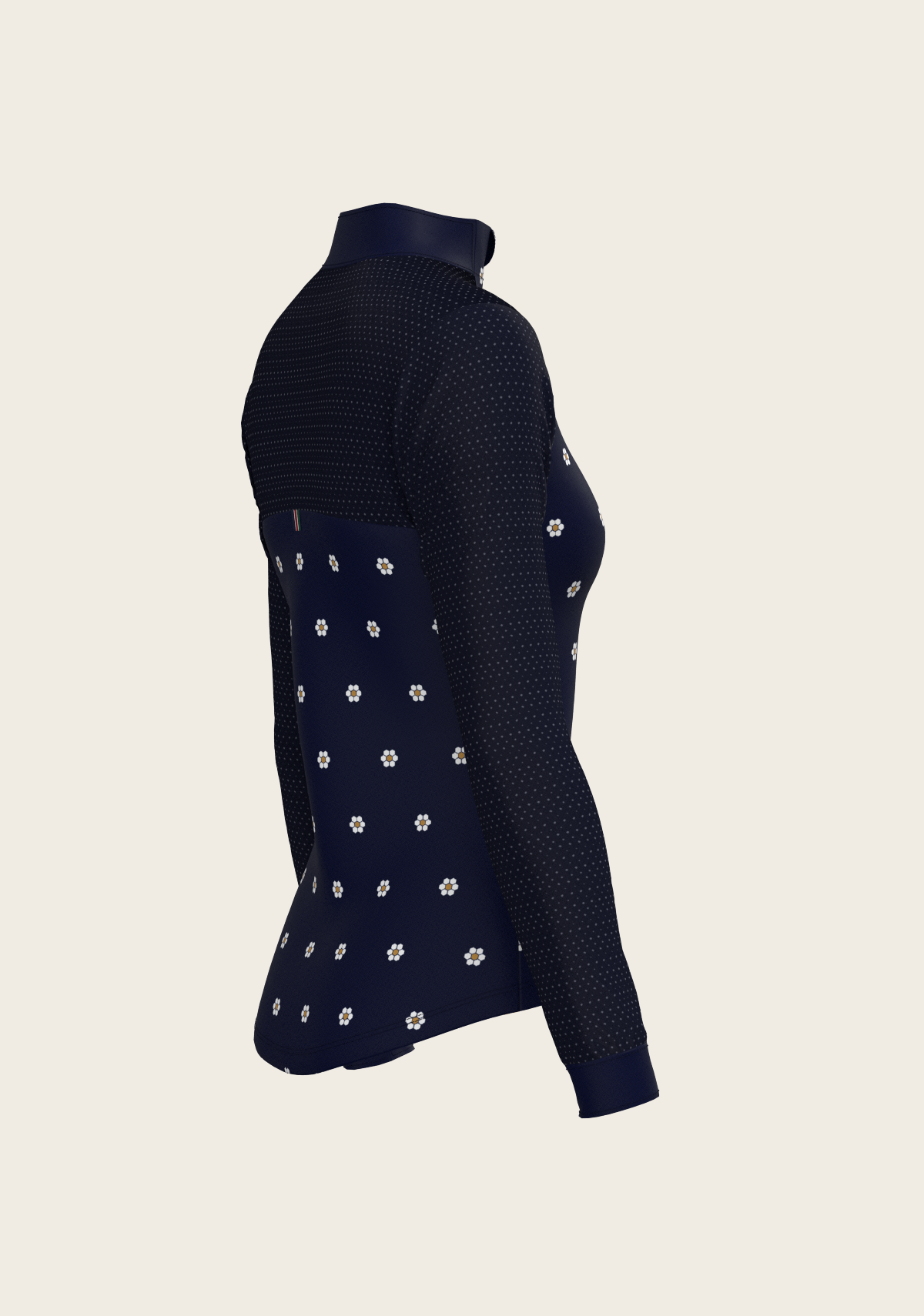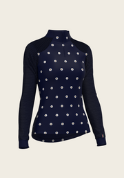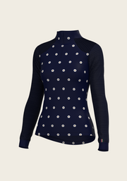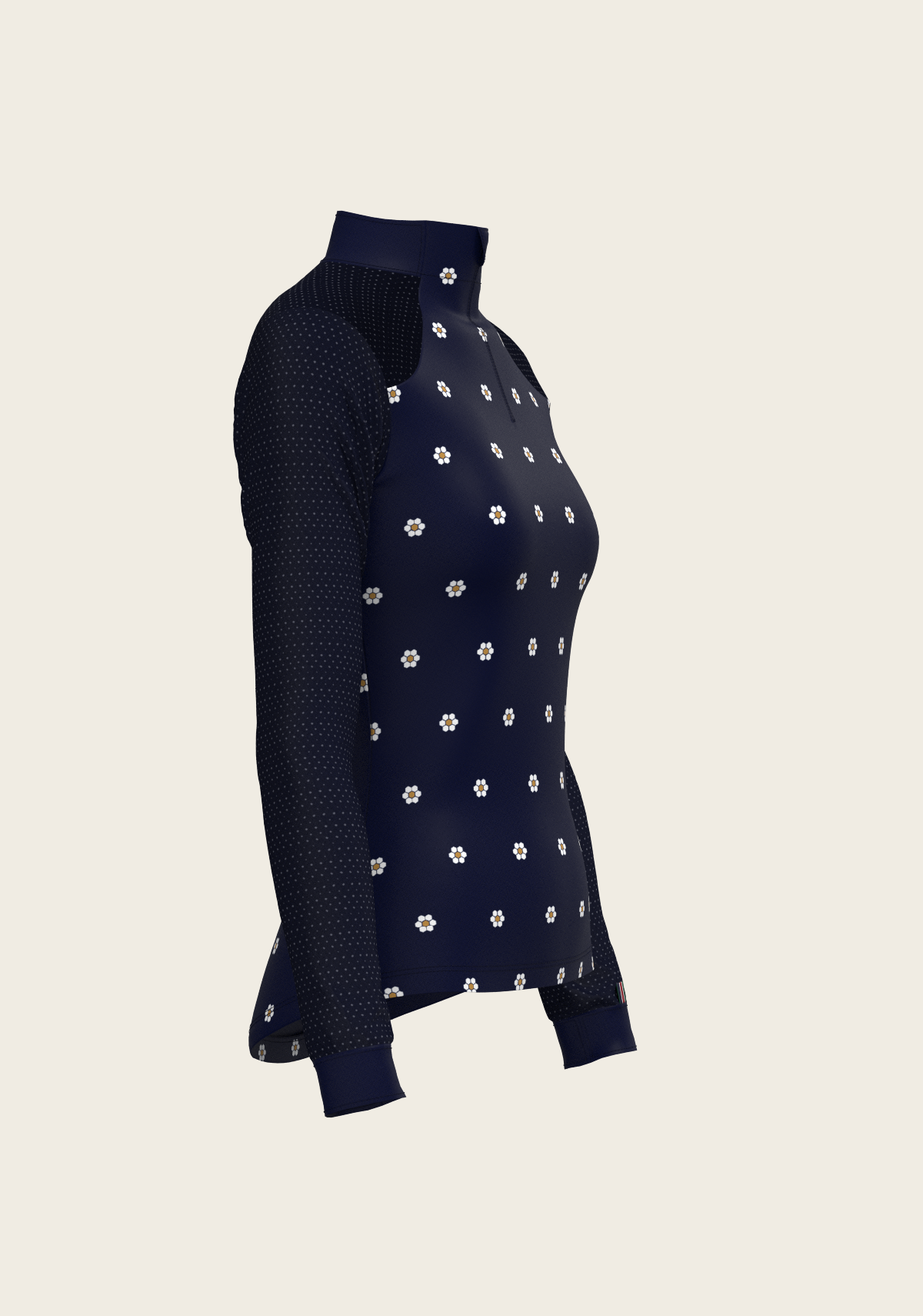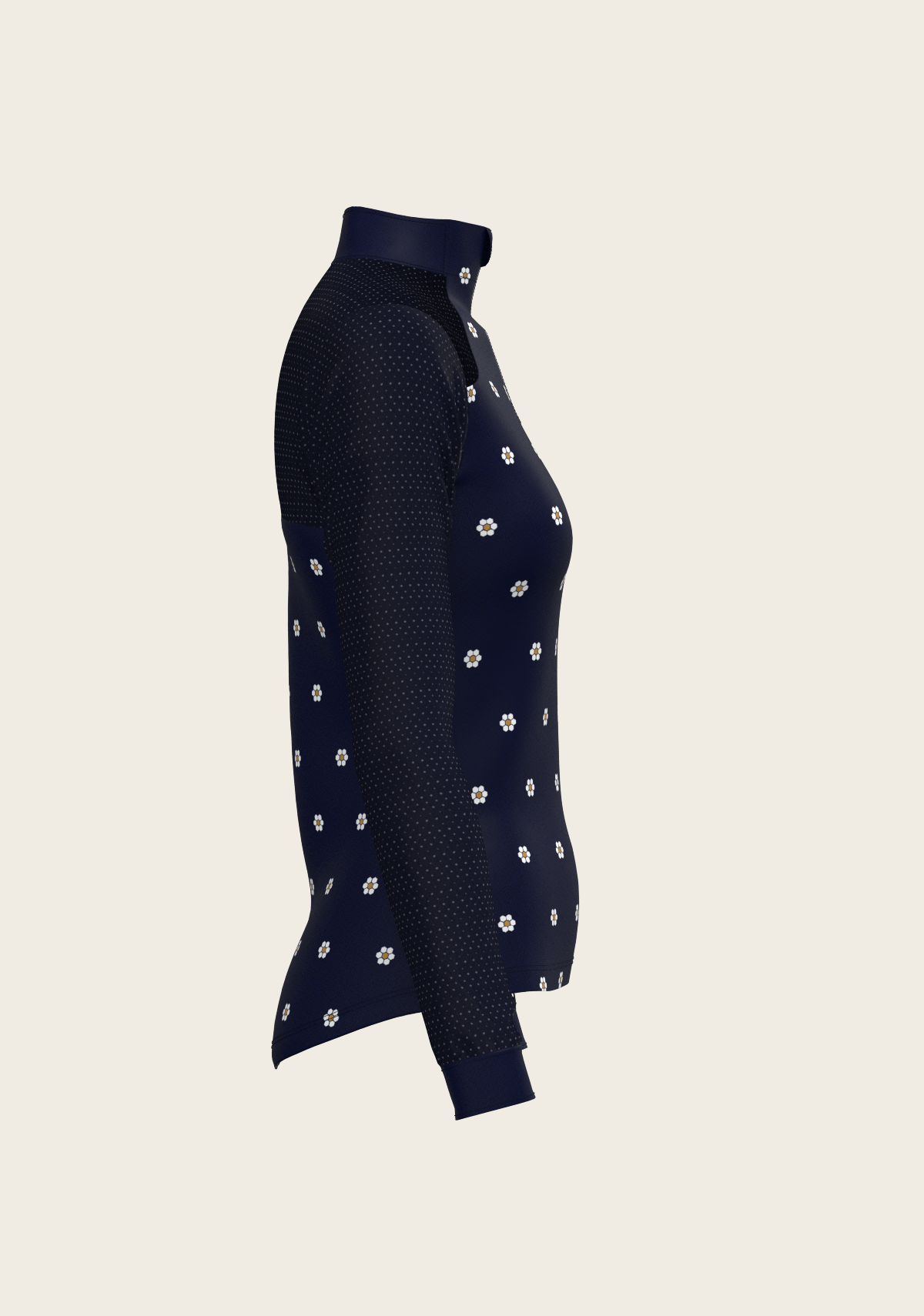 Mosaic Daises in Navy Long Sleeve Sport Sun Shirt