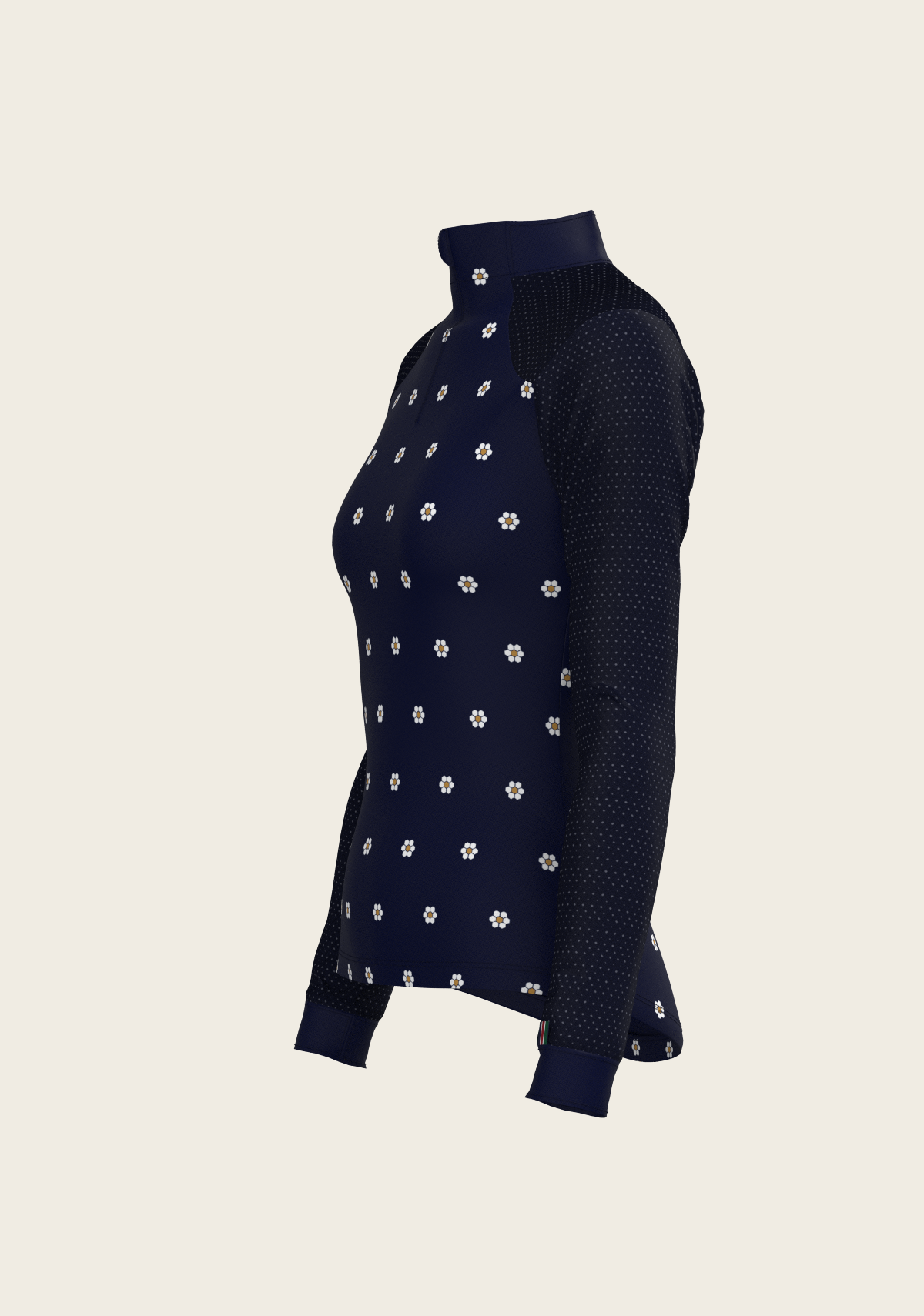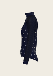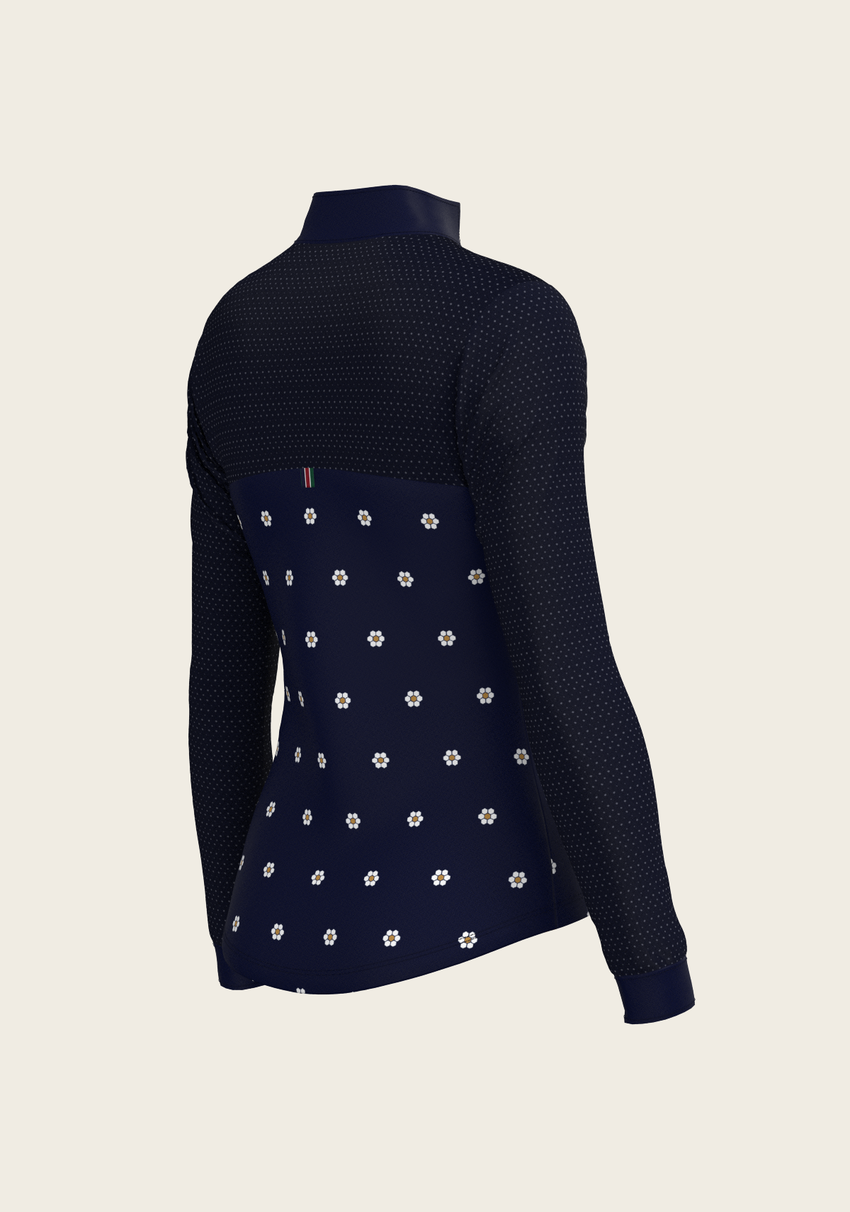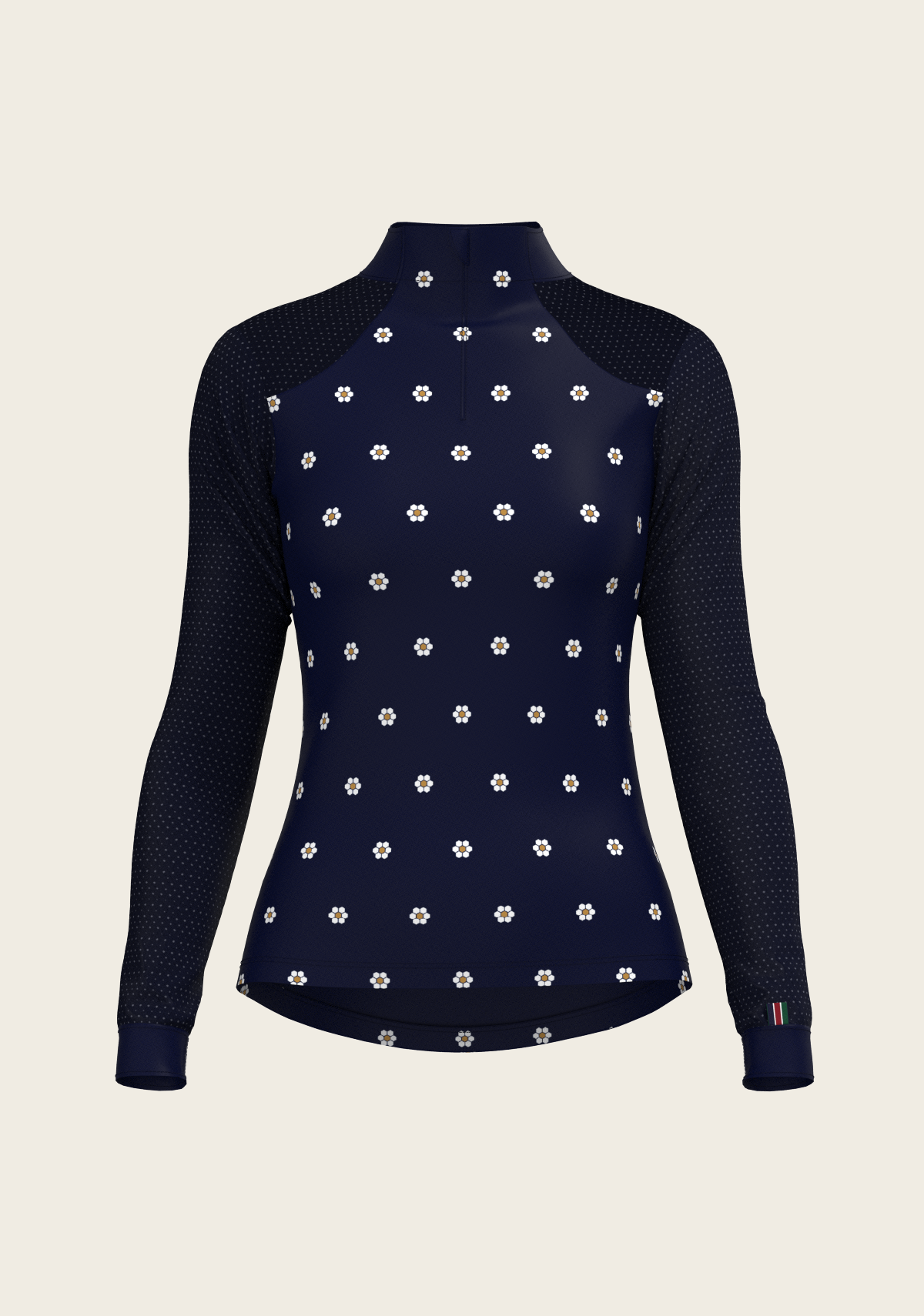 Mosaic Daises in Navy Long Sleeve Sport Sun Shirt