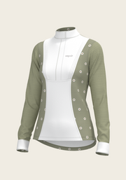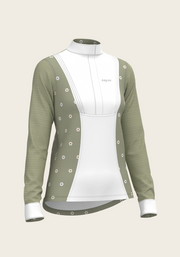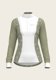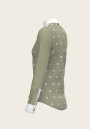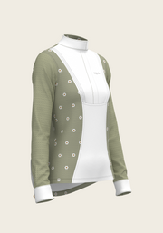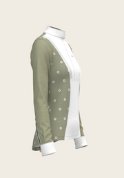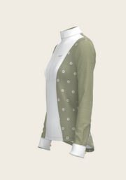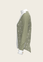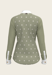 Mosaic Daises in Olive Short Pleated Long Sleeve Show Shirt