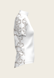 A new collection of formal show shirt made from a selection of luxurious technical fabrics. This collection boasts fine pleated details, custom Espoir gold buttons on the cuffs, easy opening hidden zips and custom Espoir petersham ribbon loops. Each style of shirt is available in formal white as well as a selection of hand illustrated prints. The crown of our new Full Circle Collection and perfect shirt for any show day outfit.