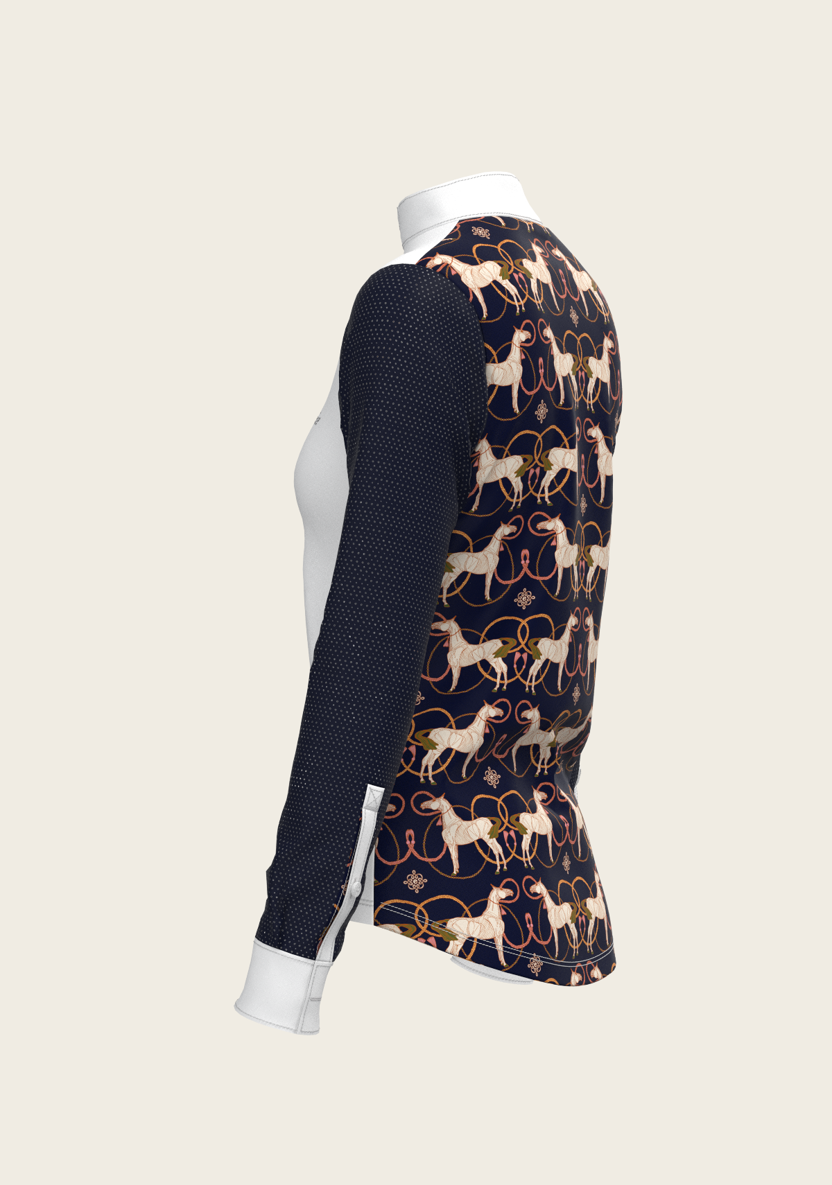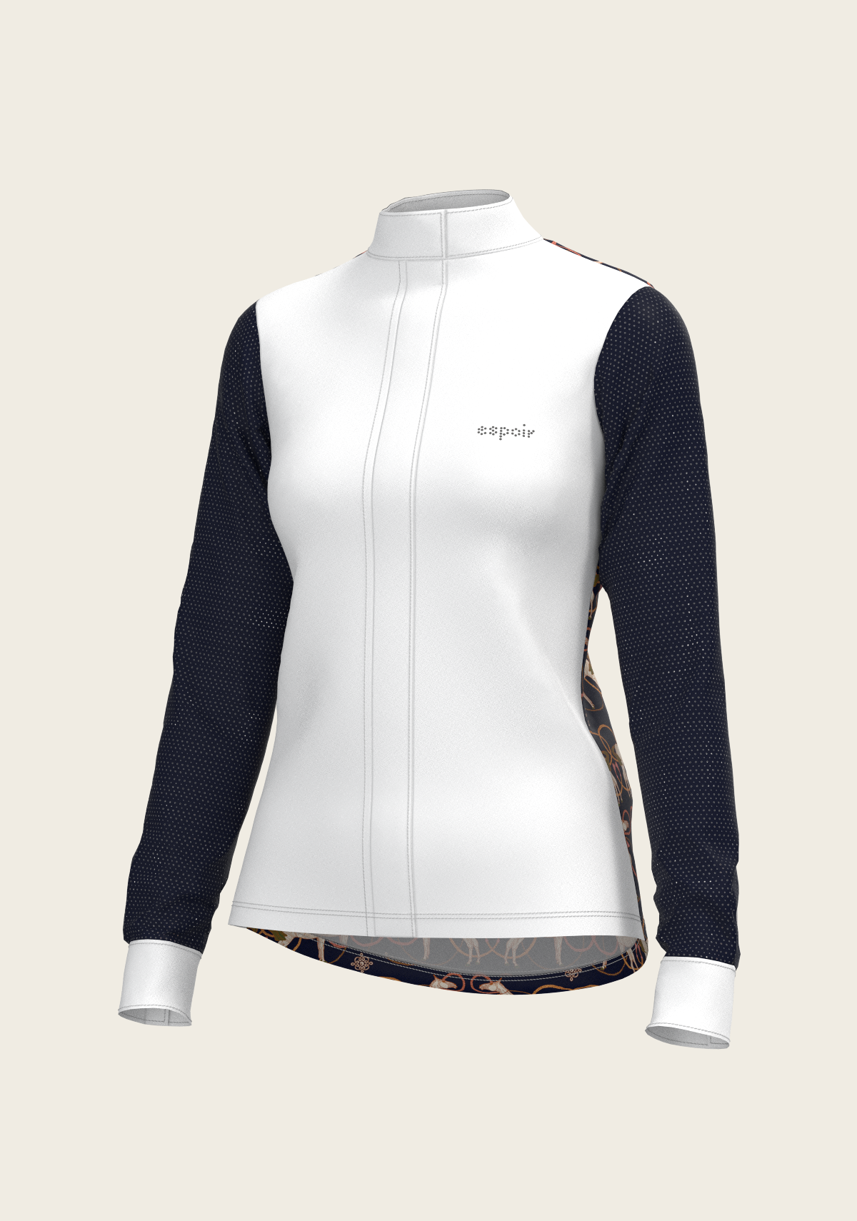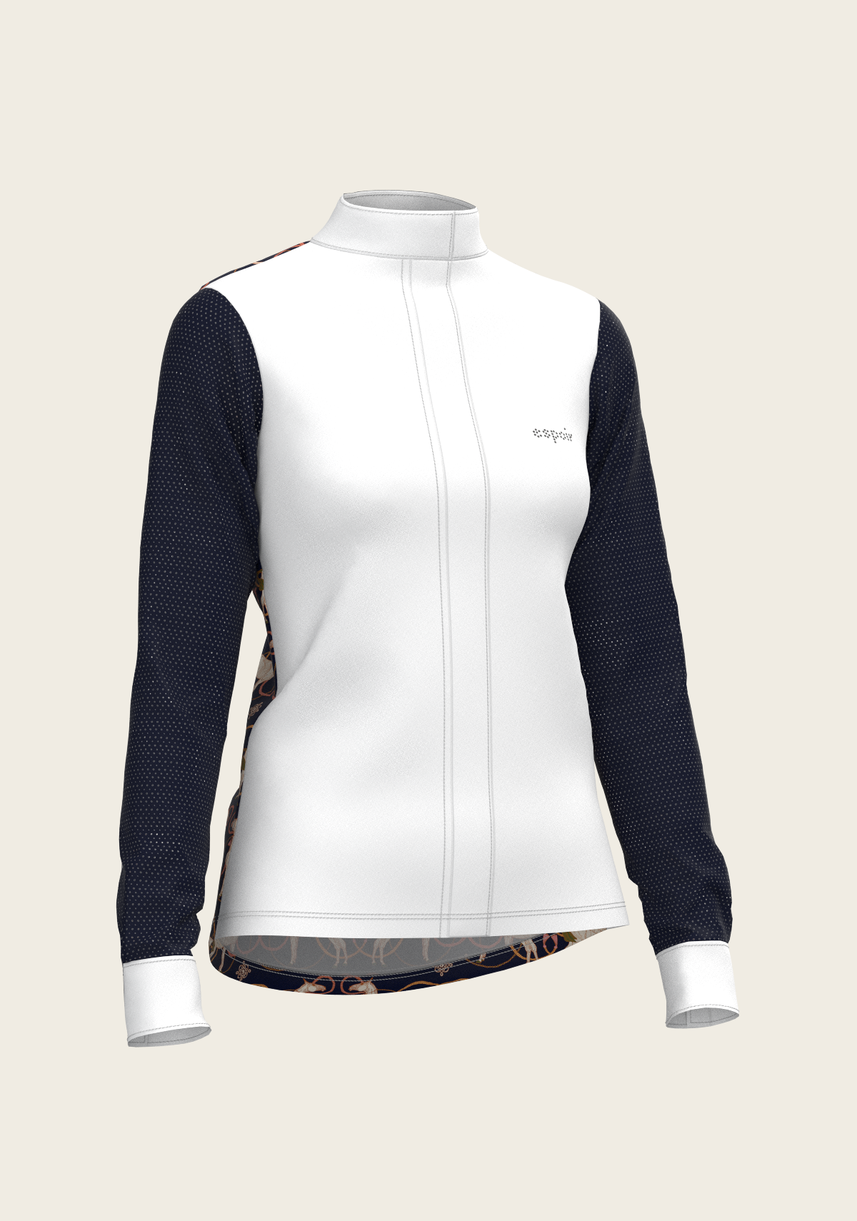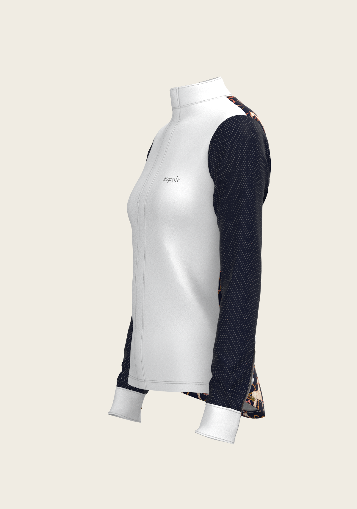 A new collection of formal show shirt made from a selection of luxurious technical fabrics. This collection boasts fine pleated details, custom Espoir gold buttons on the cuffs, easy opening hidden zips and custom Espoir petersham ribbon loops. Each style of shirt is available in formal white as well as a selection of hand illustrated prints. The crown of our new Full Circle Collection and perfect shirt for any show day outfit.