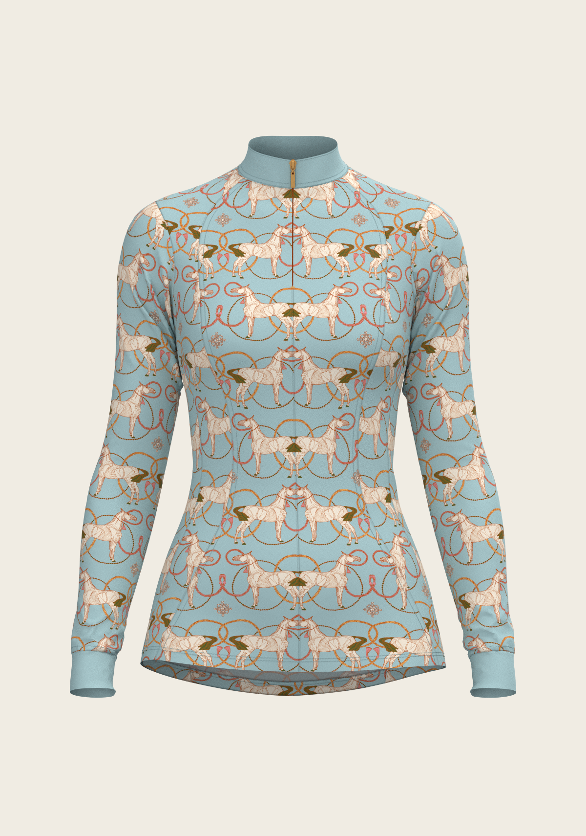 Roped Horses on Sky Blue Quarter Zip Sun Shirt