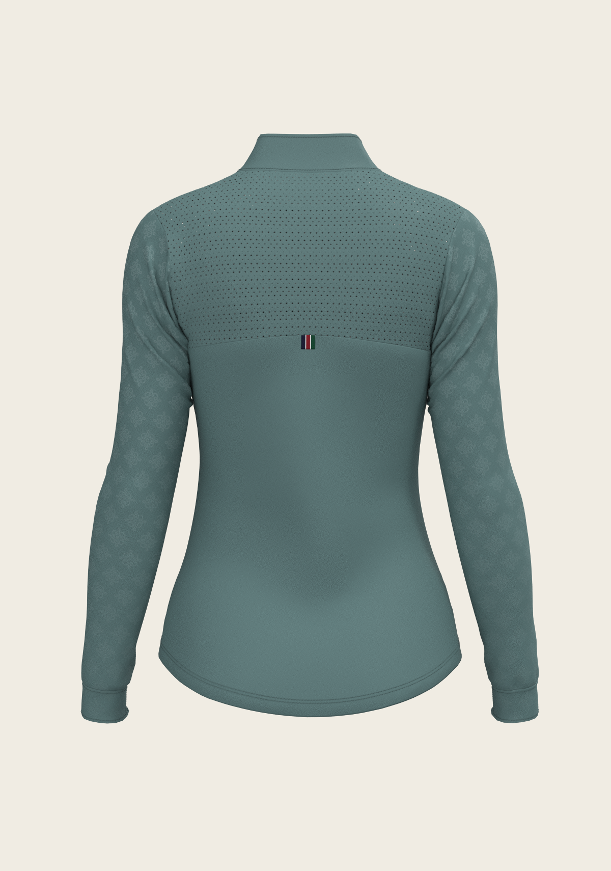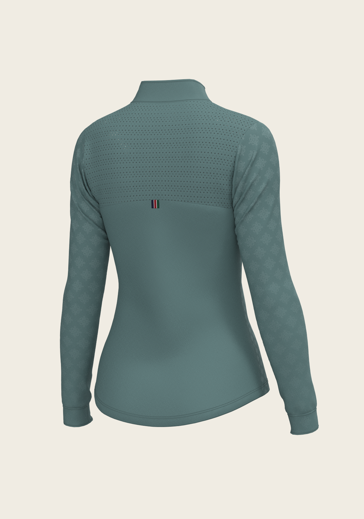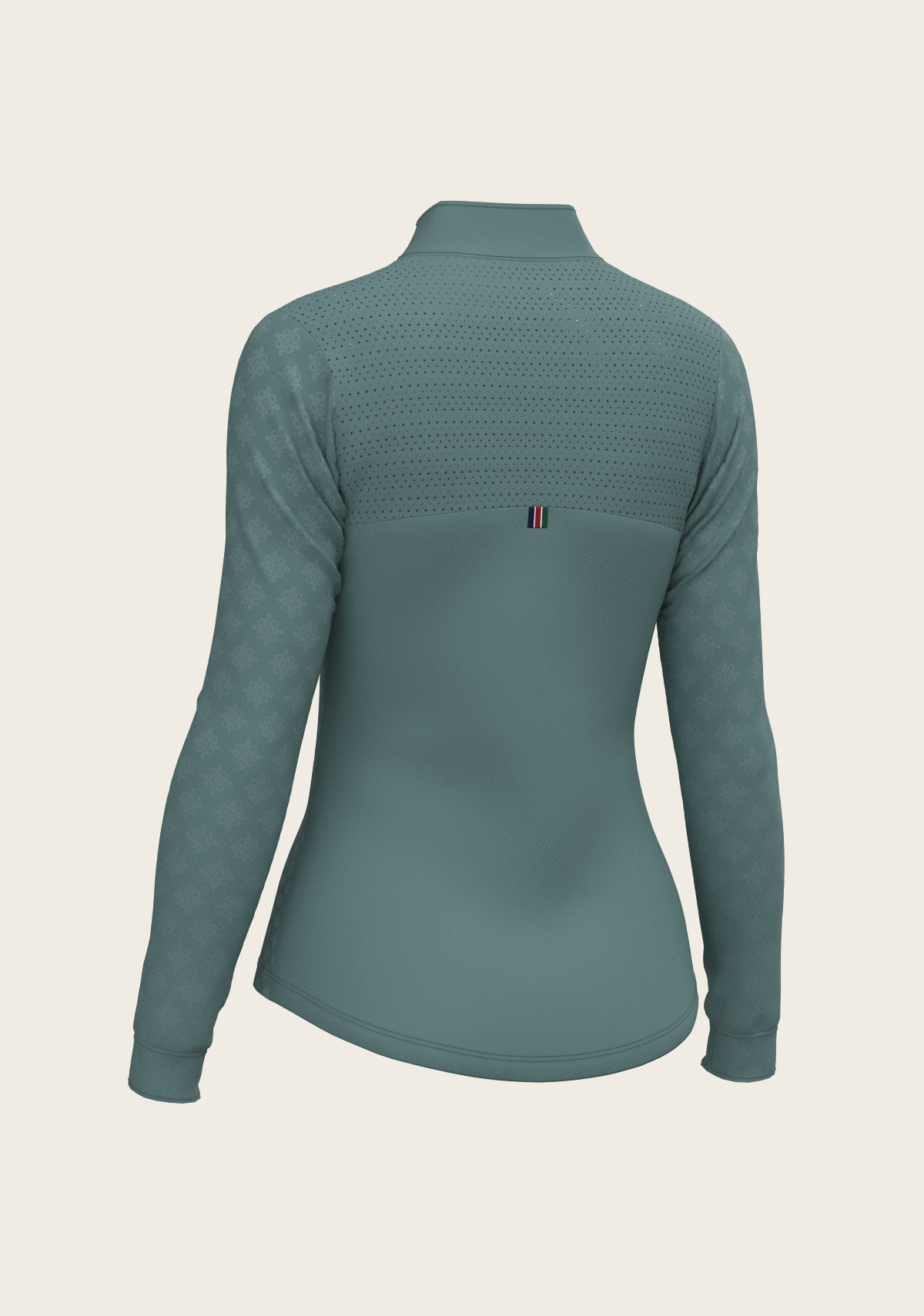 A new collection of Espoir sun shirts made from a technical, breathable, light sports fabric that is UV resistant. The technical pattern of the shirt ensures the perfect fit for the rider that provides maximum comfort and protection. The mesh inserts ensure the rider stays cool during riding. Finished off with small Espoir custom petersham ribbon loops, a hidden zip and matching tear drop puller.