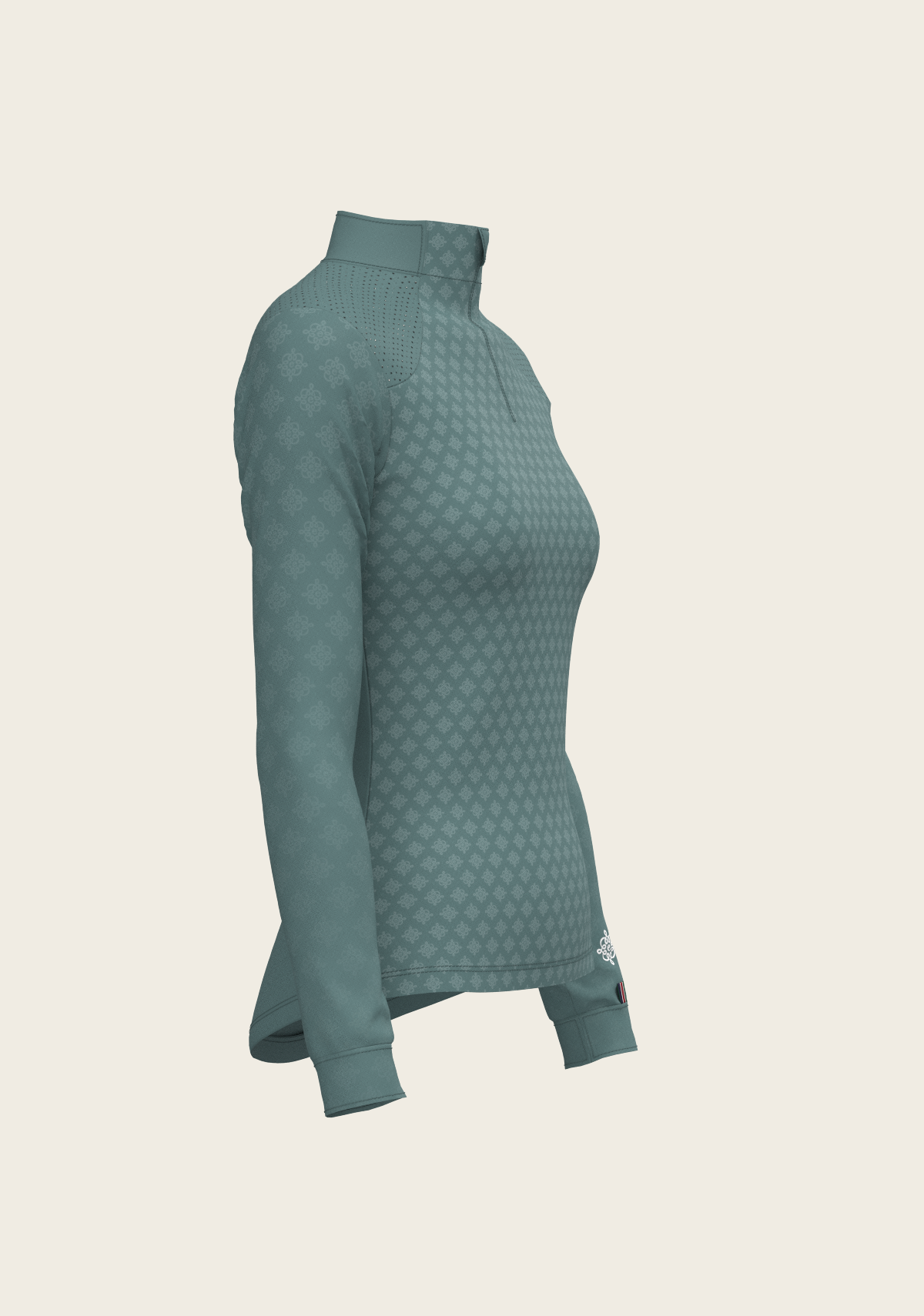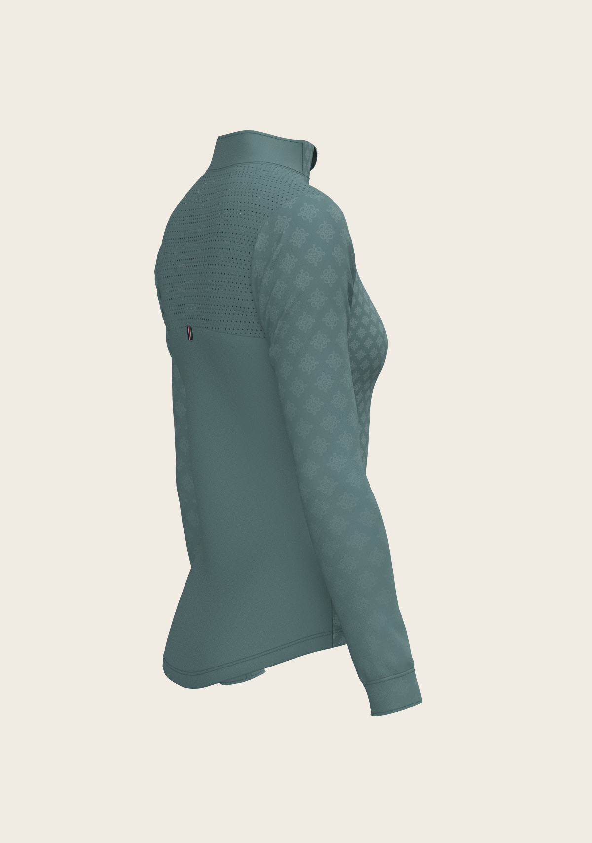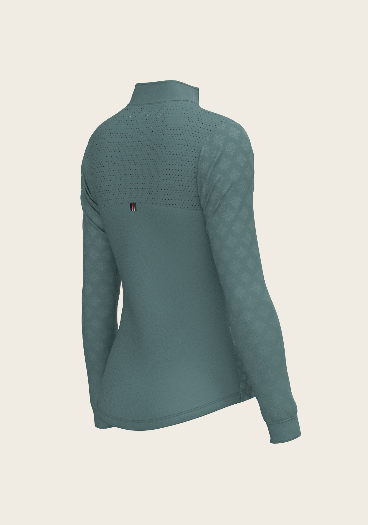 A new collection of Espoir sun shirts made from a technical, breathable, light sports fabric that is UV resistant. The technical pattern of the shirt ensures the perfect fit for the rider that provides maximum comfort and protection. The mesh inserts ensure the rider stays cool during riding. Finished off with small Espoir custom petersham ribbon loops, a hidden zip and matching tear drop puller.