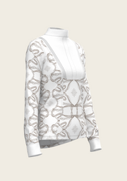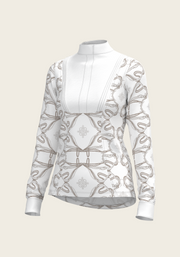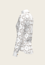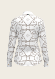 Short Pleated Roped Bridles on White Long Sleeve Show Shirt