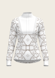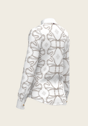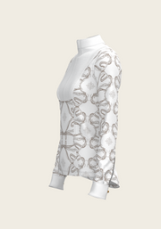 A new collection of formal show shirt made from a selection of luxurious technical fabrics. This collection boasts fine pleated details, custom Espoir gold buttons on the cuffs, easy opening hidden zips and custom Espoir petersham ribbon loops. Each style of shirt is available in formal white as well as a selection of hand illustrated prints. The crown of our new Full Circle Collection and perfect shirt for any show day outfit.