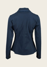 This new Super soft Cool max fabric is half the weight of our regular lightweight cool max. Perfect for hot summer days. A fitted show jacket made from a lightweight stretchable fabric, stylishly executed with princess style lines. The front panel is closed with beautiful custom Espoir buttons which match smaller buttons on each sleeve.Tone on tone details on the collar and front pocket zips add sophisticated details to this jacket. A sporty, sophisticated styled equestrian jacket.