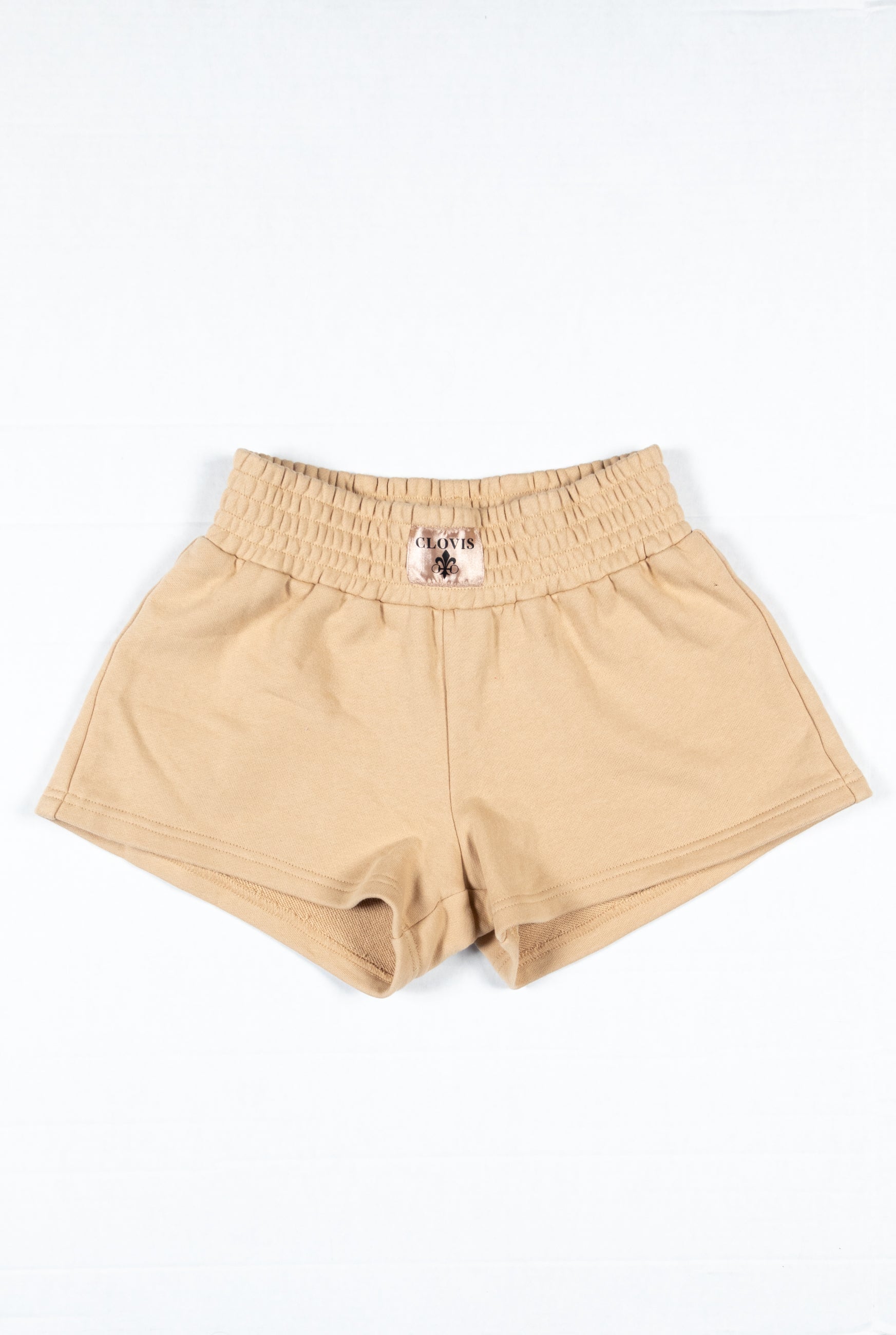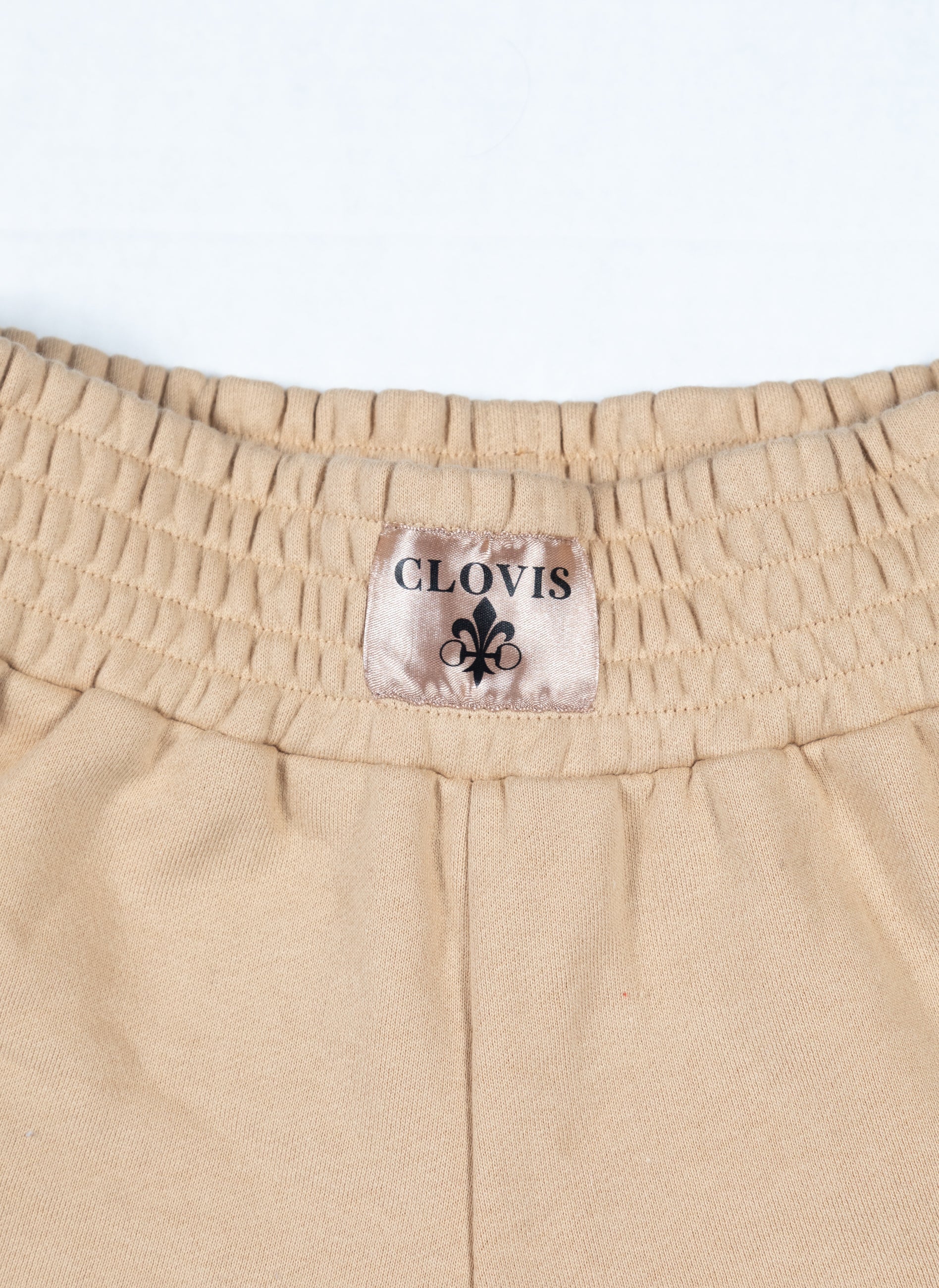 The Champion shorts are heavy duty and ultra-comfortable. They featured a wide, smocked waistband and a generous leg opening to allow ultimate comfort and movability (even if that means just moving from one side of the couch to the other). They have a satin Clovis brand tag at the front and feature our namesake embroidered on the left hip.