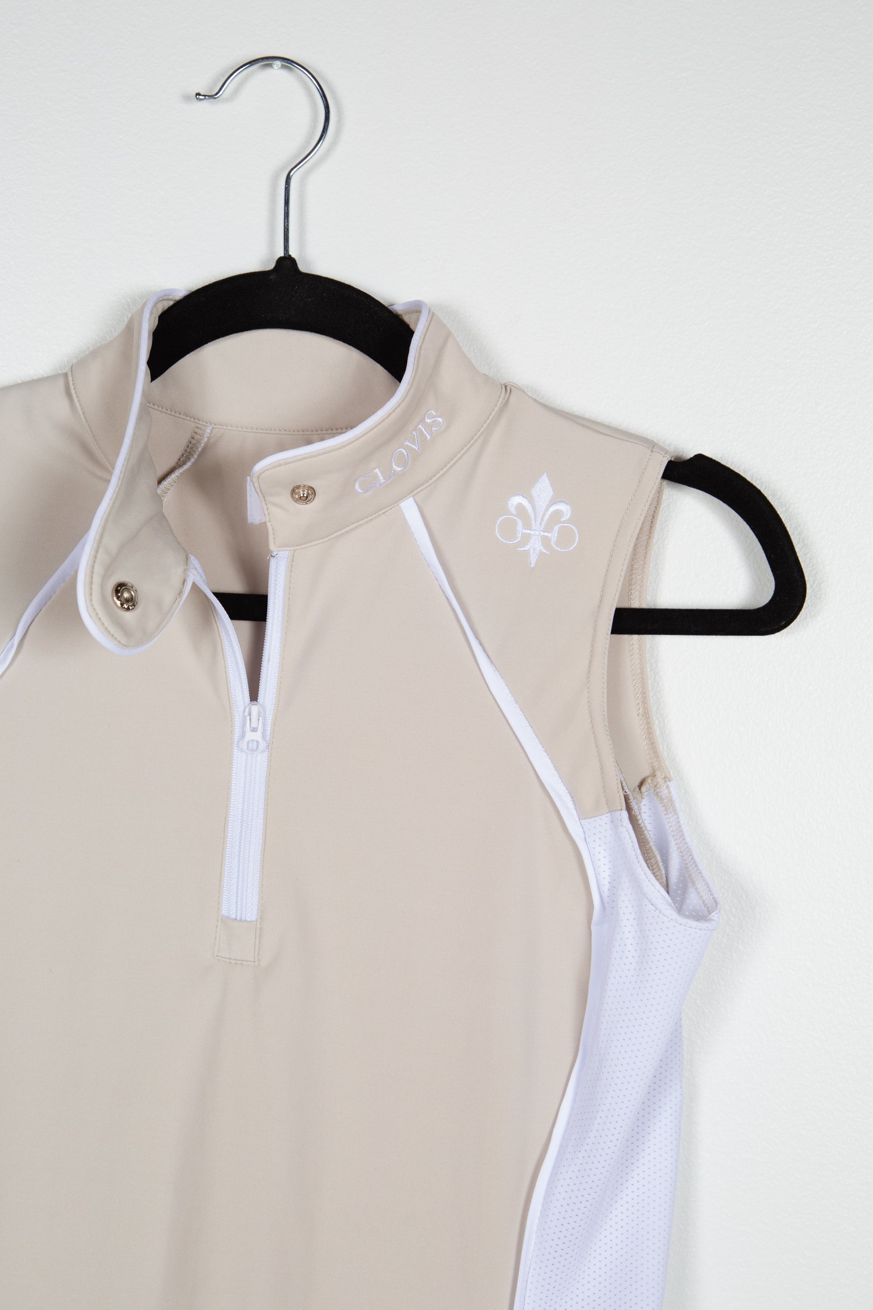 With perfect mesh paneling down the sides and flattering piping, the Grand Prix is the sleeveless version of the Monaco. It was designed to make you feel your absolute best when you need it, and keep you calm, cool, and collected while you zoom the Grand Prix…and/or your next horse show/golf match/ski slope/workout!