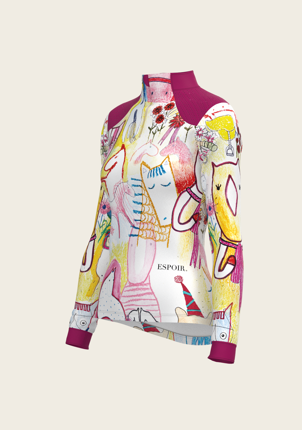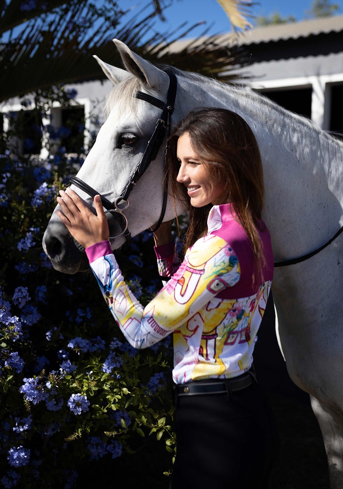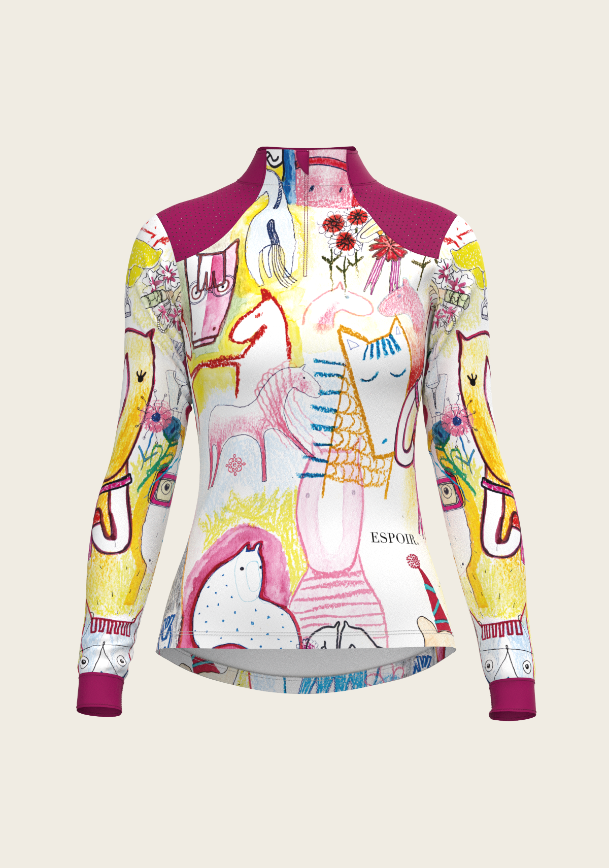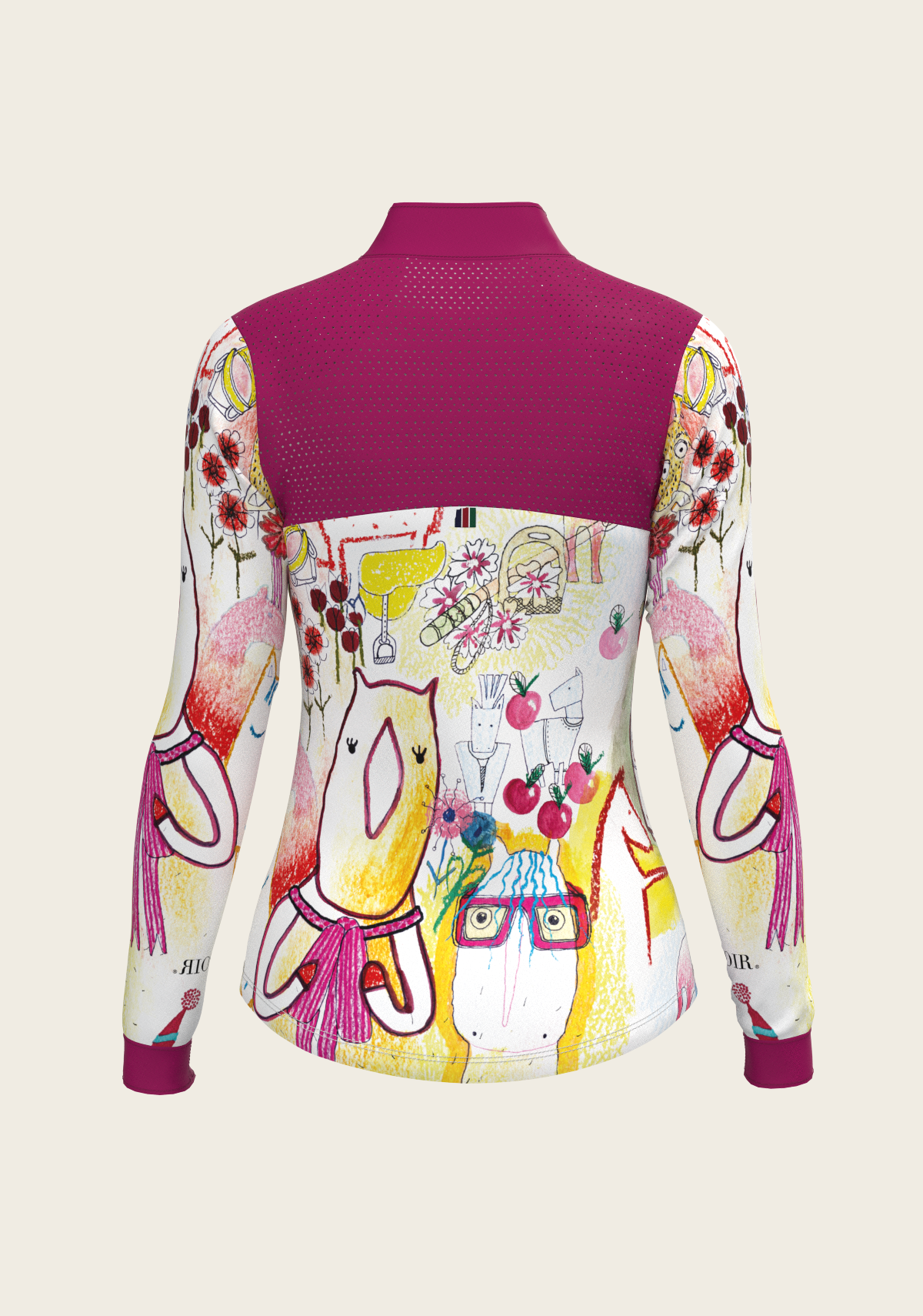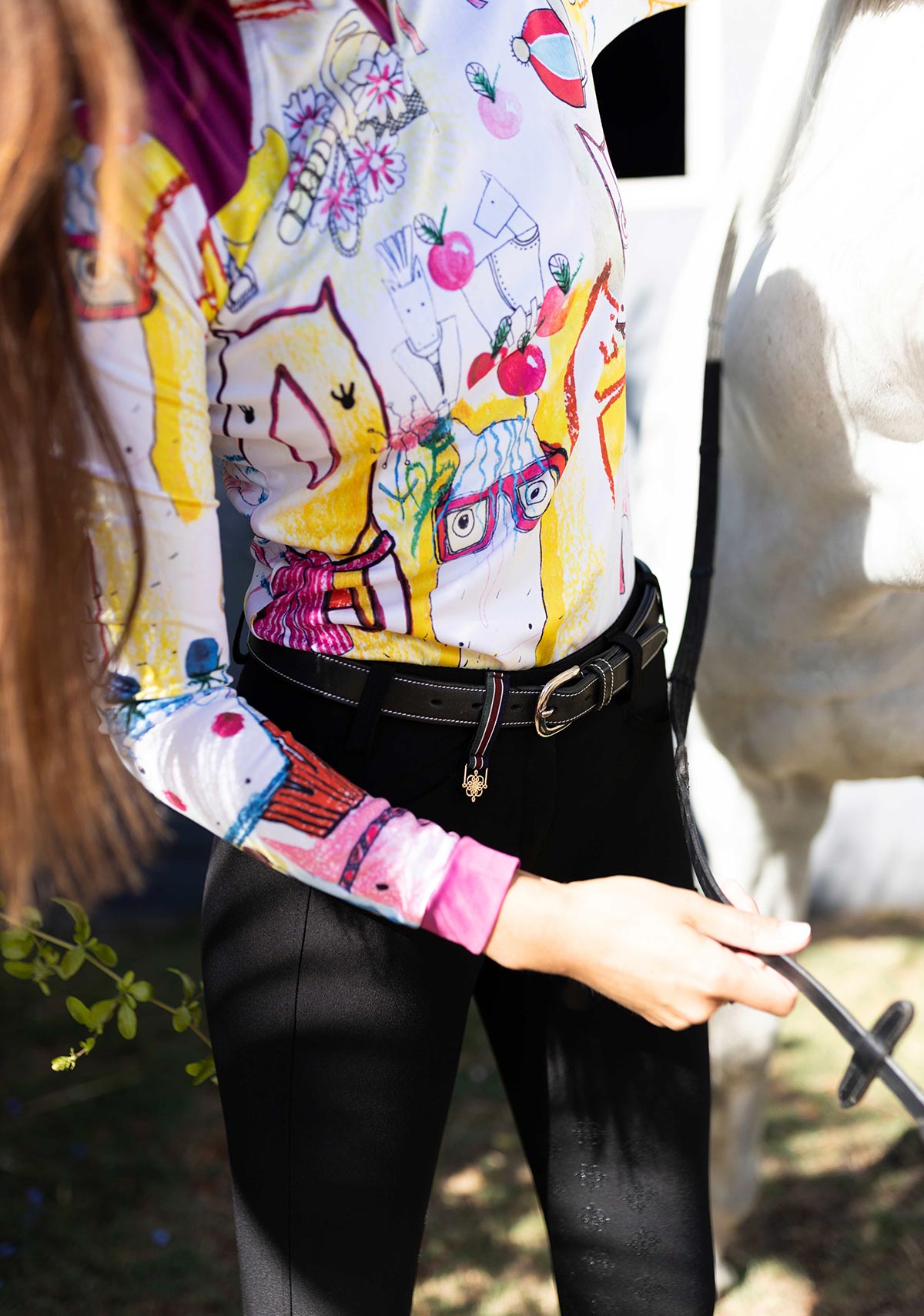 A new collection of Espoir sun shirts made from a technical, breathable, light sports fabric that is UV resistant. The technical pattern of the shirt ensures the perfect fit for the rider that provides maximum comfort and protection. The mesh inserts ensure the rider stays cool during riding. Finished off with small Espoir custom petersham ribbon loops, a hidden zip and matching tear drop puller.