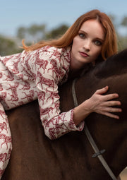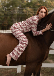 Embrace the cozy season with our fall equestrian sleepwear collection, printed on ultra-soft natural rayon fiber for a gentle, luxurious feel. The timeless Rossamare print, designed in five seasonal color combinations, brings the grace and beauty of the equestrian lifestyle into your home. Whether you're relaxing after a long day or enjoying a peaceful morning with a cup of tea.