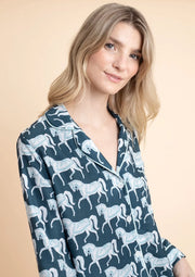 Embrace the cozy season with our fall equestrian sleepwear collection, printed on ultra-soft natural rayon fiber for a gentle, luxurious feel. The timeless Rossamare print, designed in five seasonal color combinations, brings the grace and beauty of the equestrian lifestyle into your home. Whether you're relaxing after a long day or enjoying a peaceful morning with a cup of tea.