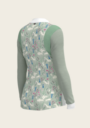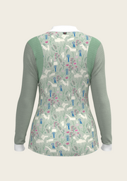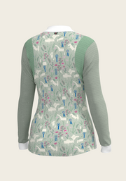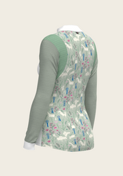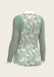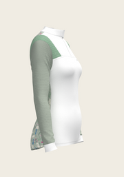 White with Rosettes in Lime Green Long Sleeve Sport Show Shirt