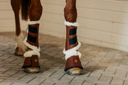Constructed with a neoprene foam base & leatherette, leather alternative outer layer for overreach protection. Faux fur trim for anti-rub & specialized hook & loop closure.