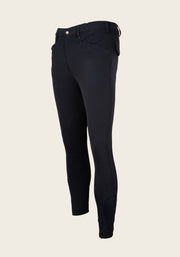 A stylish and elegantly designed breech for men with pockets in the front and the back. Our Espoir signature crossed belt loop at the back adds refined details to this style of mens breeches.