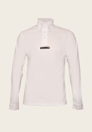 A classic Espoir mens show shirt with our custom Espoir ribbon tie back loop as beautiful detail. Made from a light four way stretch moisture wicking fabric that will keep you cool and dry.