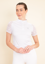 Simple sophistication: Introducing our latest show shirt, a must-have for every equestrian wardrobe. Technical fabric meets a silky, lightweight feel with delicate lace.