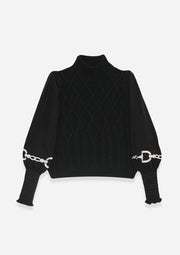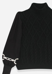 Ellie Cable Knit Sweater with Embroidered Sleeves | Black