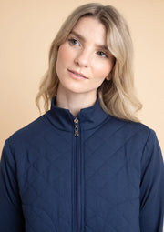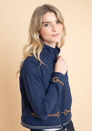 Introducing our Ember Cropped Jacket – a modern silhouette designed to pair seamlessly with high-waist breeches or leggings. Featuring unique equestrian embroideries, a quilted texture, high collar, and golden-silver hem details, this jacket adds a touch of sophistication to any outfit. From the barn to yoga, embrace chic versatility effortlessly!