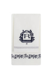 An elegant set of personalized embroidered hand towels that make the most unique and special detail to your powder-room. A subtle set of an embroidered towel and linen with the option of your personal monogram in a subtle equestrian stirrup.